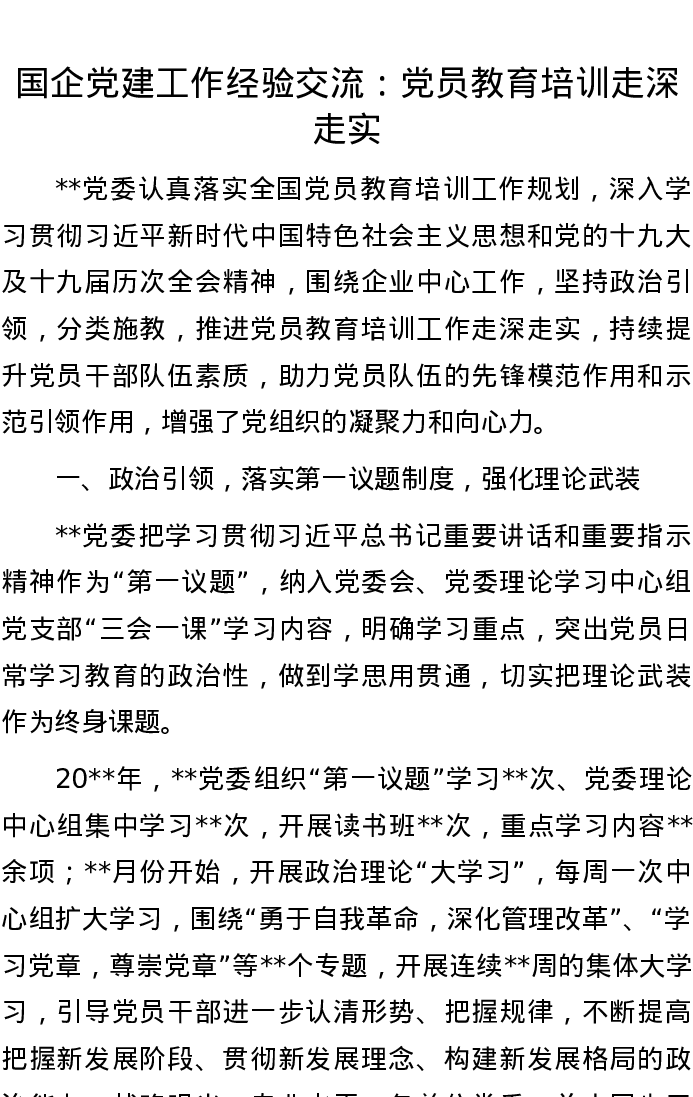 20220810国企党建工作经验交流:党员教育培训走深走实