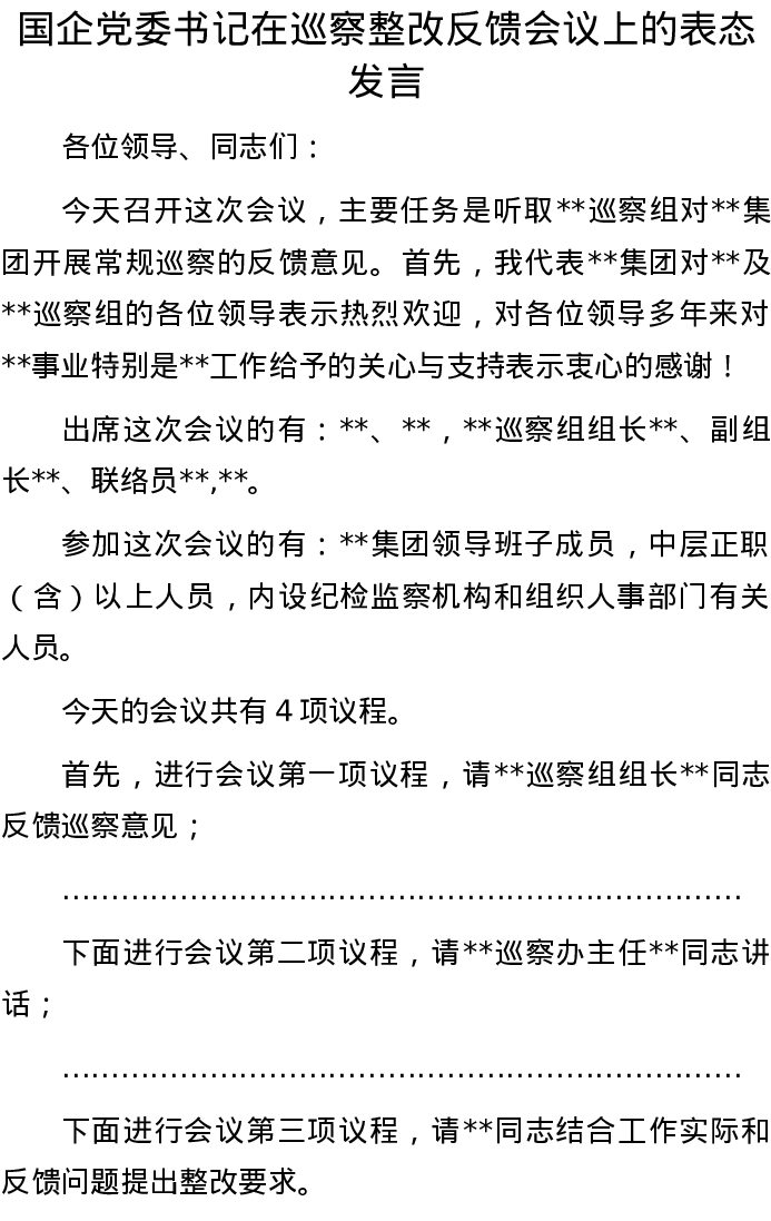 20220811国企党委书记在巡察整改反馈会议上的表态发言
