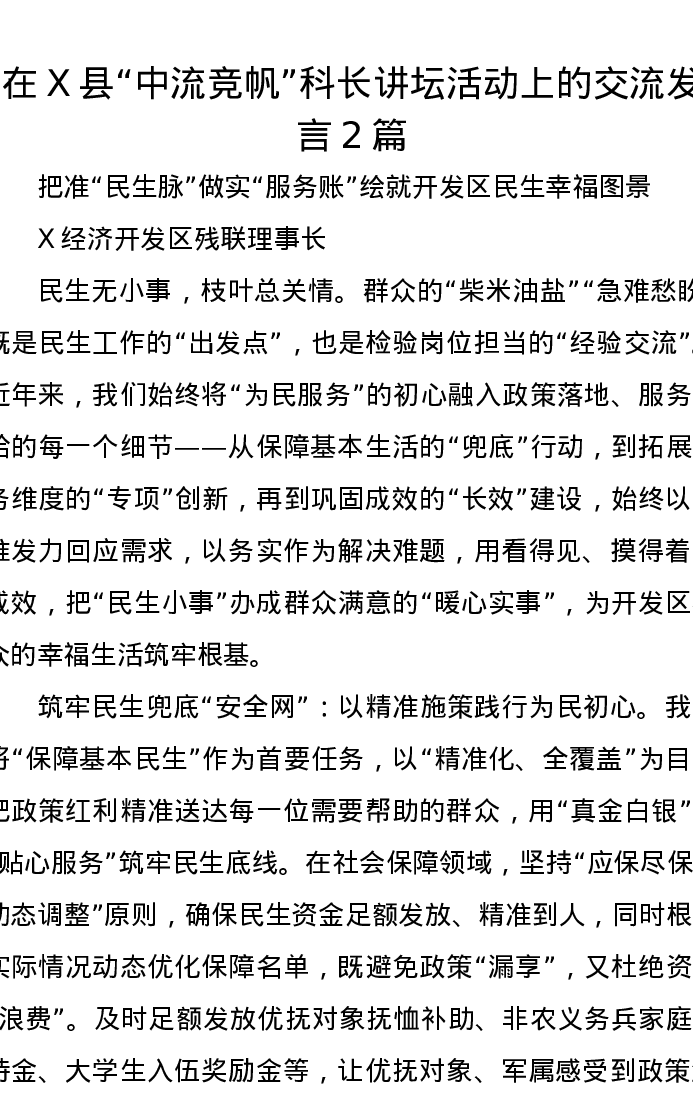 在X县“中流竞帆”科长讲坛活动上的交流发言2篇