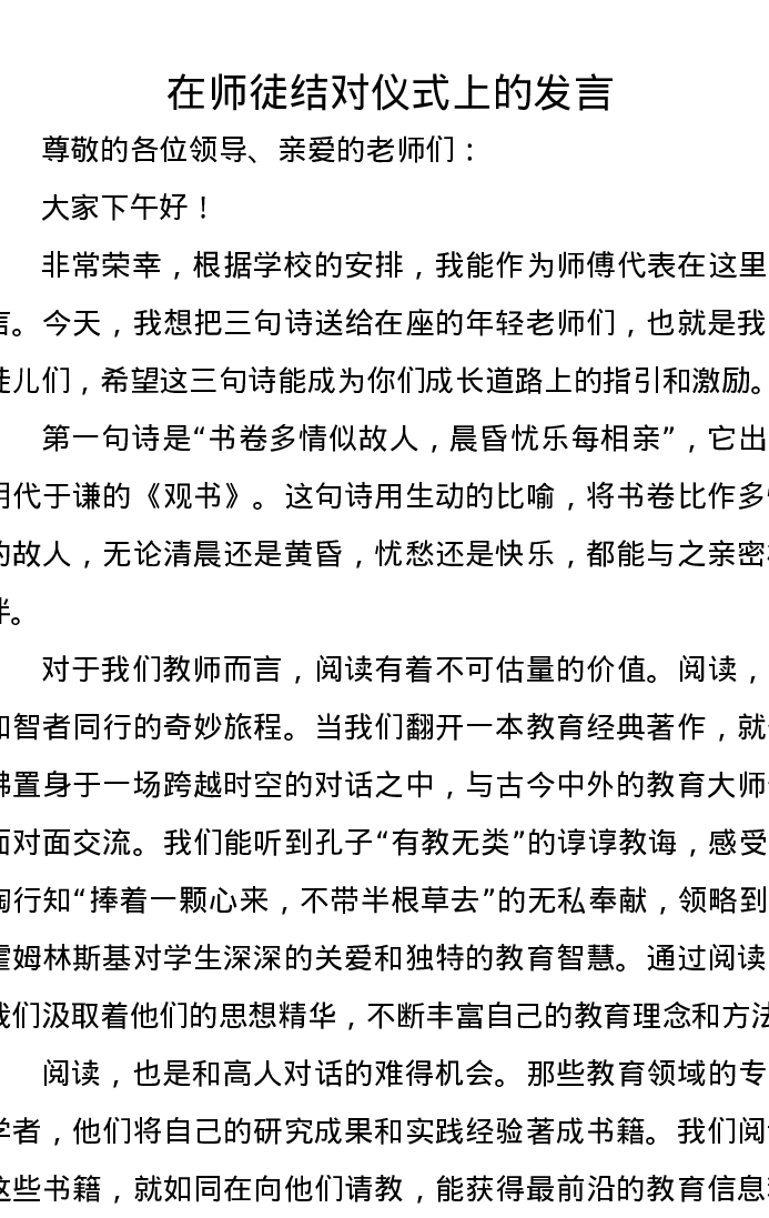 在师徒结对仪式上的发言