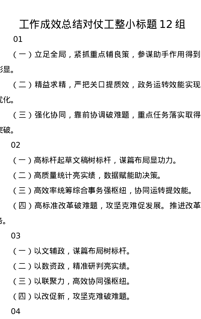 工作成效总结对仗工整小标题12组