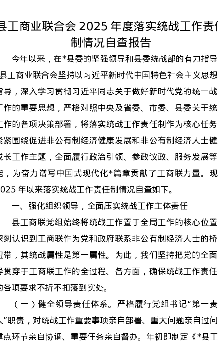 县工商业联合会2025年度落实统战工作责任制情况自查报告