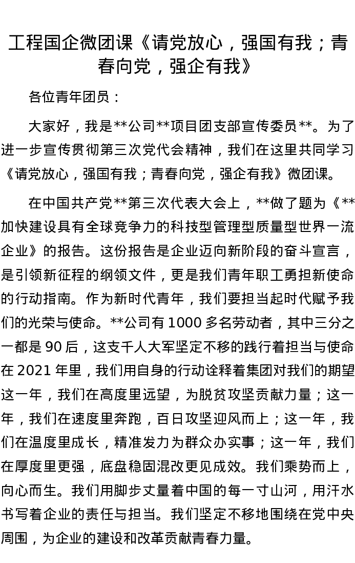 20220813工程国企微团课《请党放心,强国有我;青春向党,强企有我》