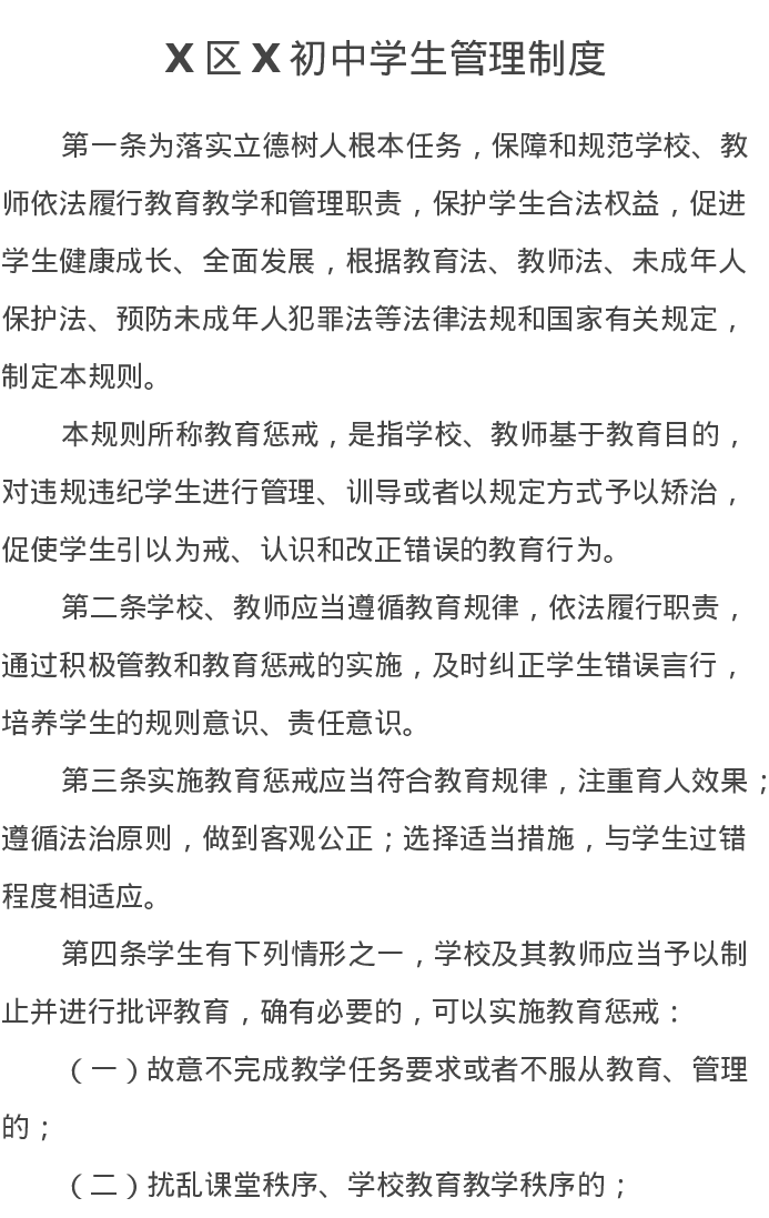 X初级中学规章制度汇编(学生管理、师德师风管理、财务管理、教学管理)