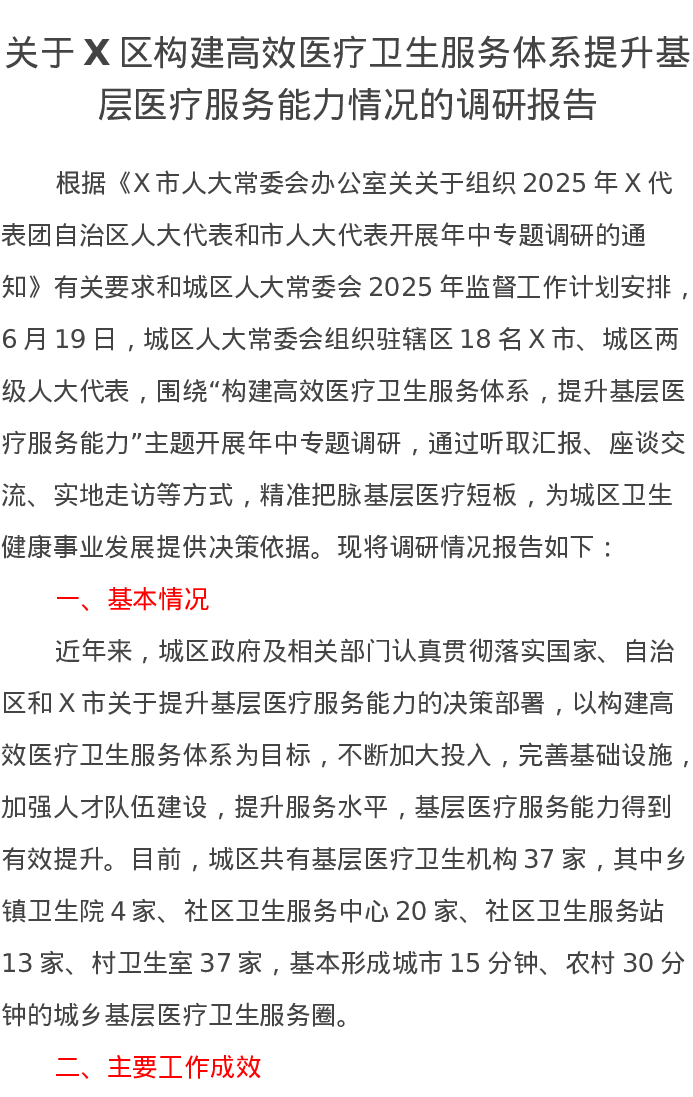 关于X区构建高效医疗卫生服务体系提升基层医疗服务能力情况的调研报告