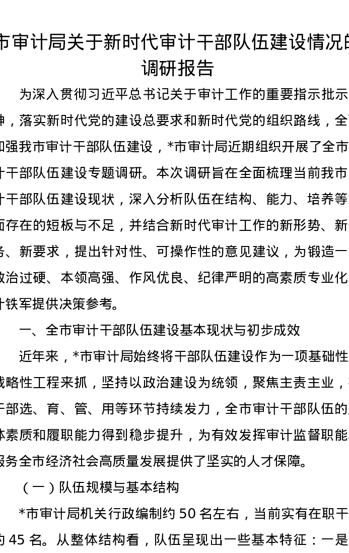 市审计局关于新时代审计干部队伍建设情况的调研报告