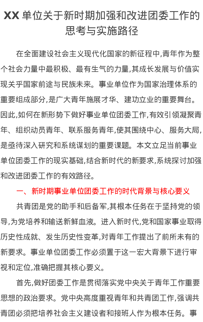 调研报告:XX单位关于新时期加强和改进团委工作的思考与实施路径