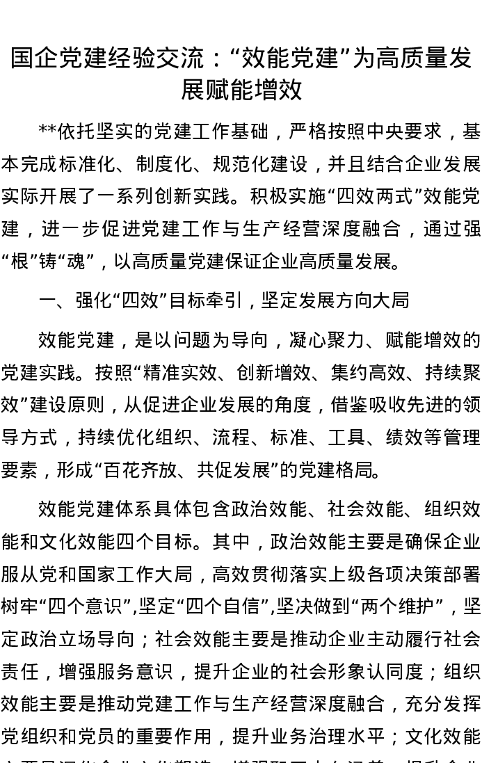 20220817国企党建经验交流:“效能党建”为高质量发展赋能增效