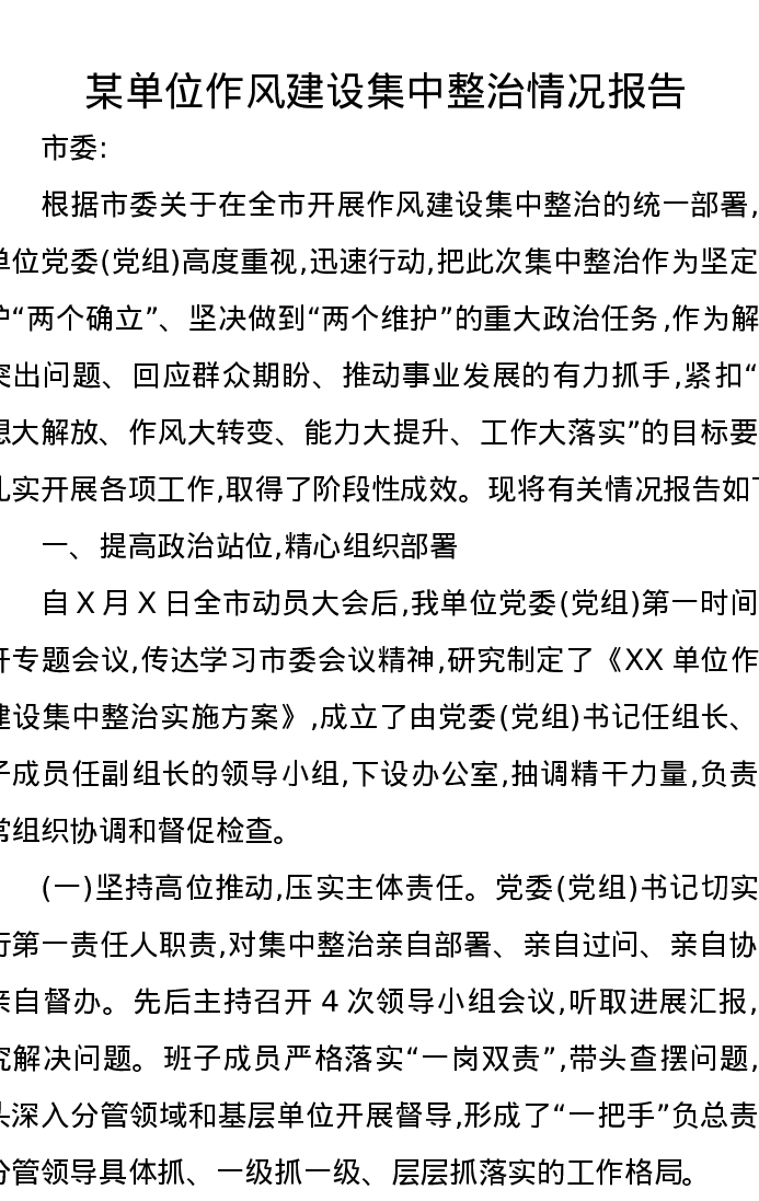 某单位作风建设集中整治情况报告