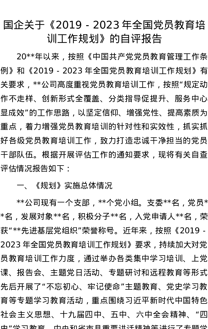 20220817国企关于《2019-2023年全国党员教育培训工作规划》的自评报告