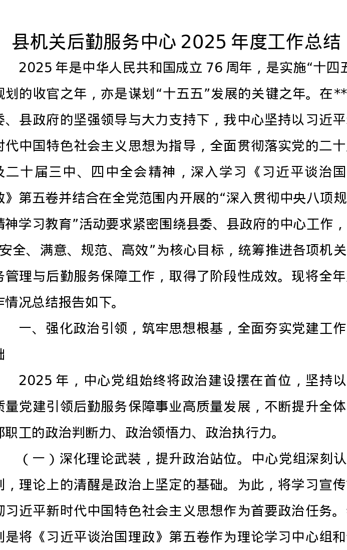 县机关后勤服务中心2025年度工作总结