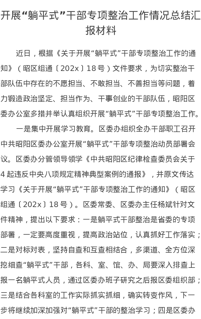 开展“躺平式”干部专项整治工作情况总结汇报材料