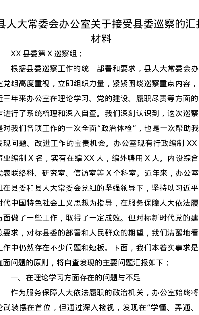 县人大常委会办公室关于接受县委巡察的汇报材料