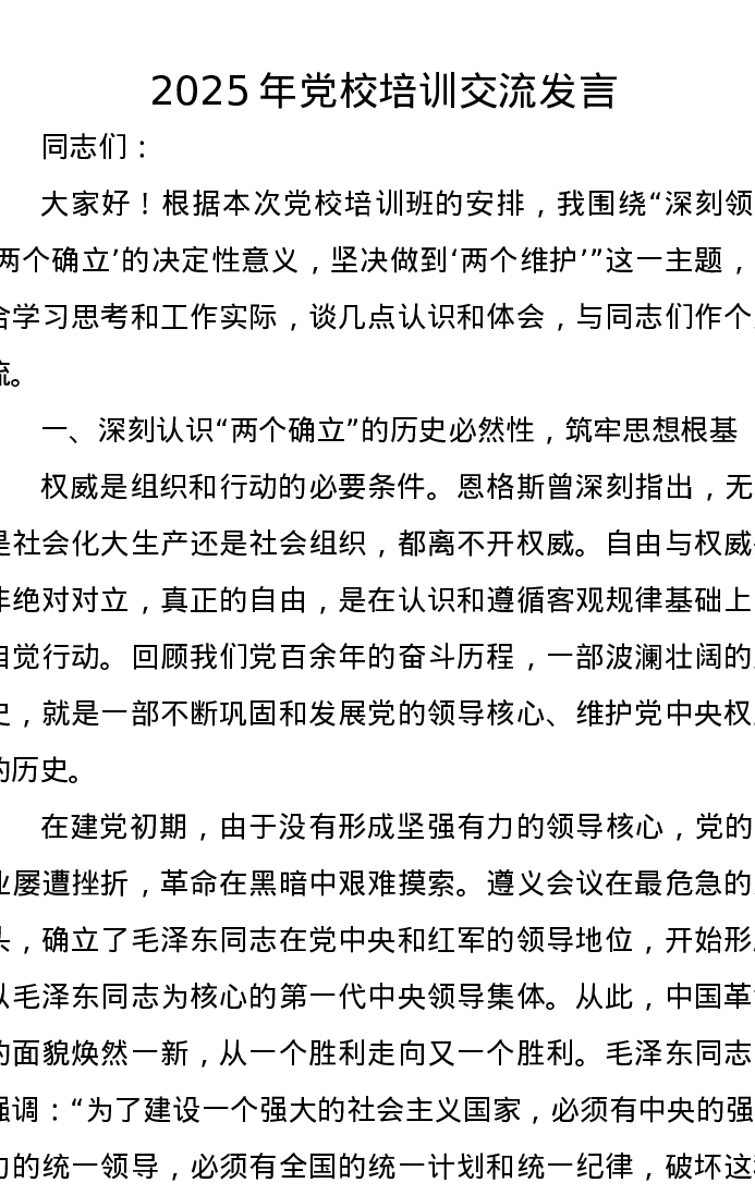 2025年党校培训交流发言