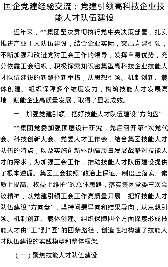 20220821国企党建经验交流:党建引领高科技企业技能人才队伍建设