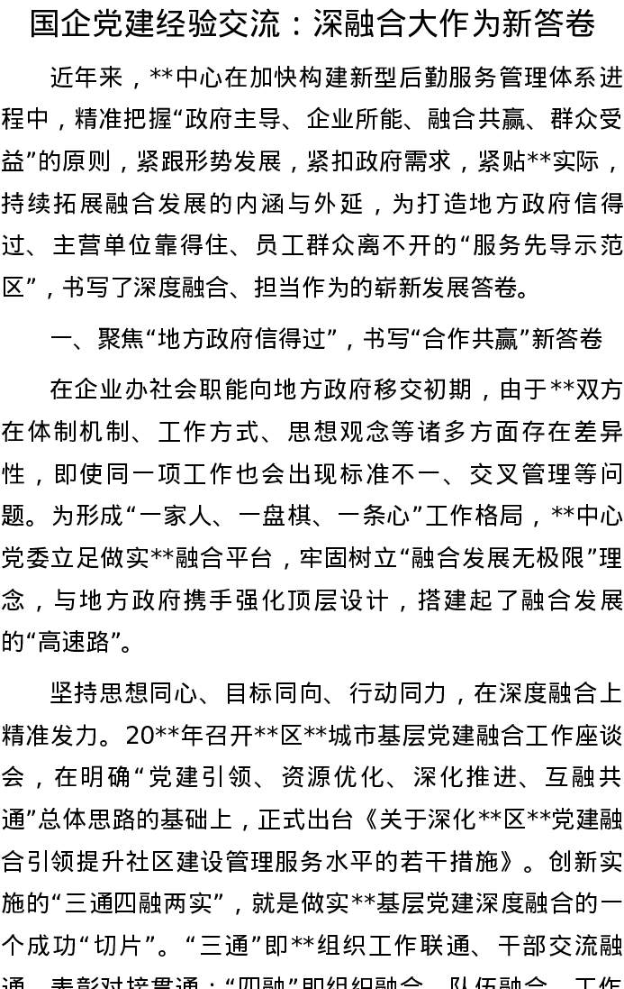 20220821国企党建经验交流:深融合 大作为 新答卷