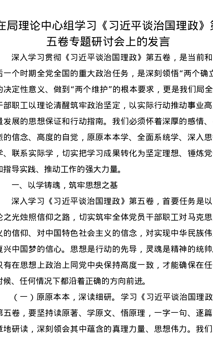 在局理论中心组学习《习近平谈治国理政》第五卷专题研讨会上的发言