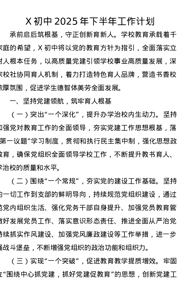 X初中2025年下半年工作计划