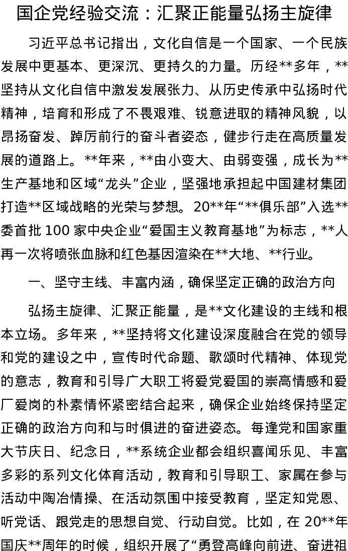 20220822国企党经验交流:汇聚正能量 弘扬主旋律