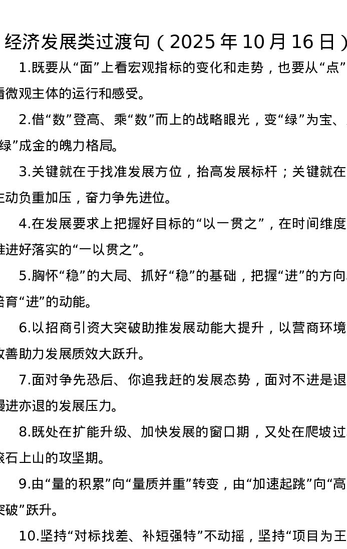 经济发展类过渡句(2025年10月16日)