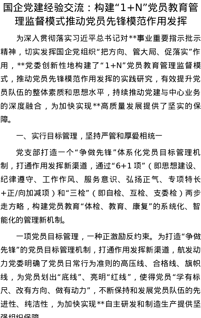 20220823国企党建经验交流:构建“1+N”党员教育管理监督模式 推动党员先锋模范作用发挥