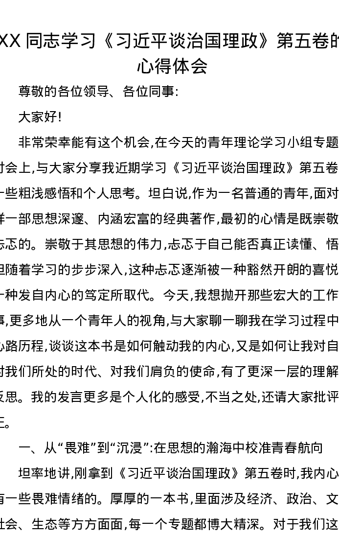 XX同志学习《习近平谈治国理政》第五卷的心得体会