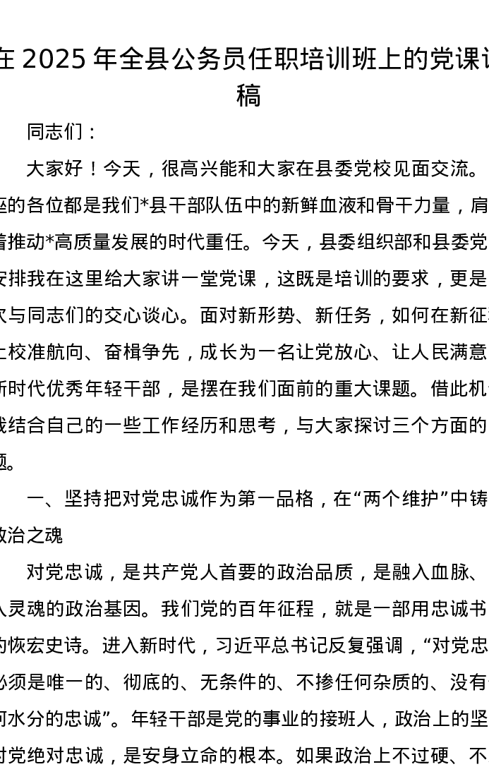在2025年全县公务员任职培训班上的党课讲稿