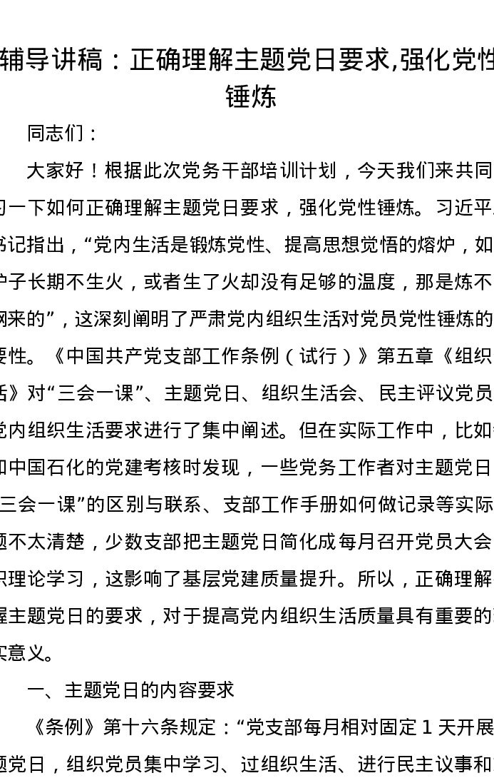辅导讲稿:正确理解主题党日要求 ,强化党性锤炼