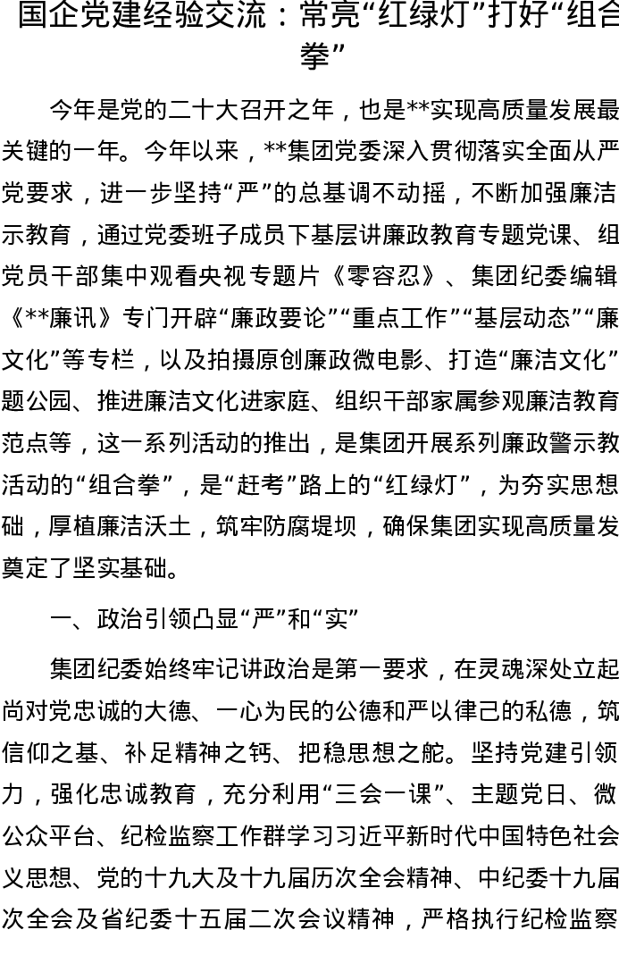 20220830国企党建经验交流:常亮“红绿灯” 打好 “组合拳”