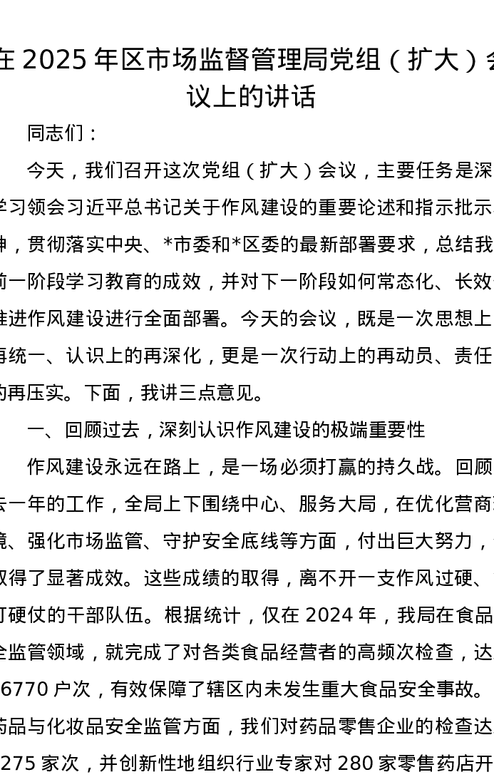 在2025年区市场监督管理局党组(扩大)会议上的讲话