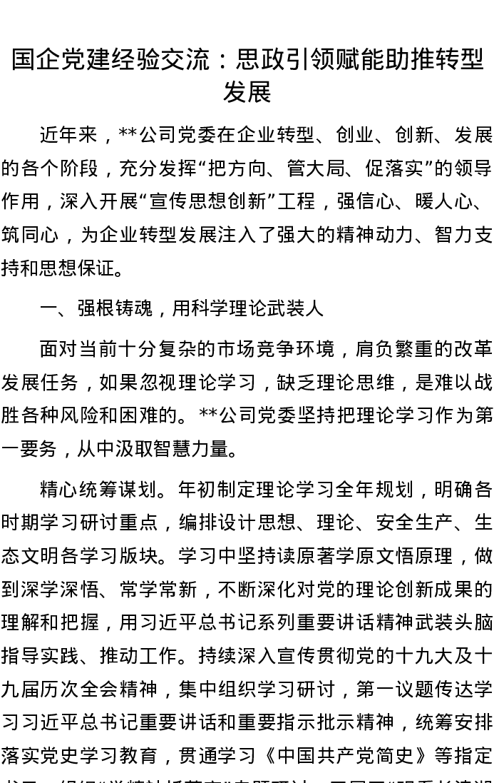 20220901国企党建经验交流:思政引领赋能 助推转型发展