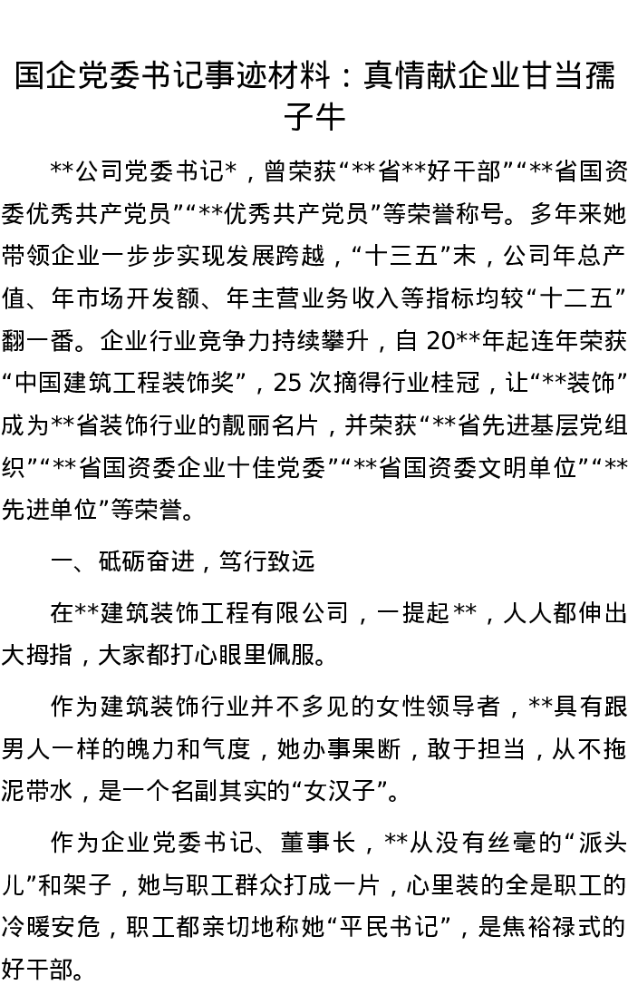 20220902国企党委书记事迹材料:真情献企业 甘当孺子牛