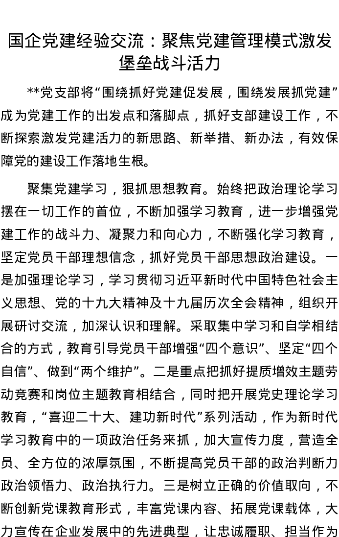 20220902国企党建经验交流:聚焦党建管理模式 激发堡垒战斗活力
