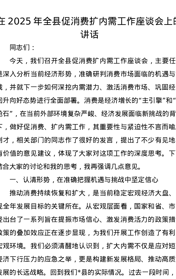 在2025年全县促消费扩内需工作座谈会上的讲话