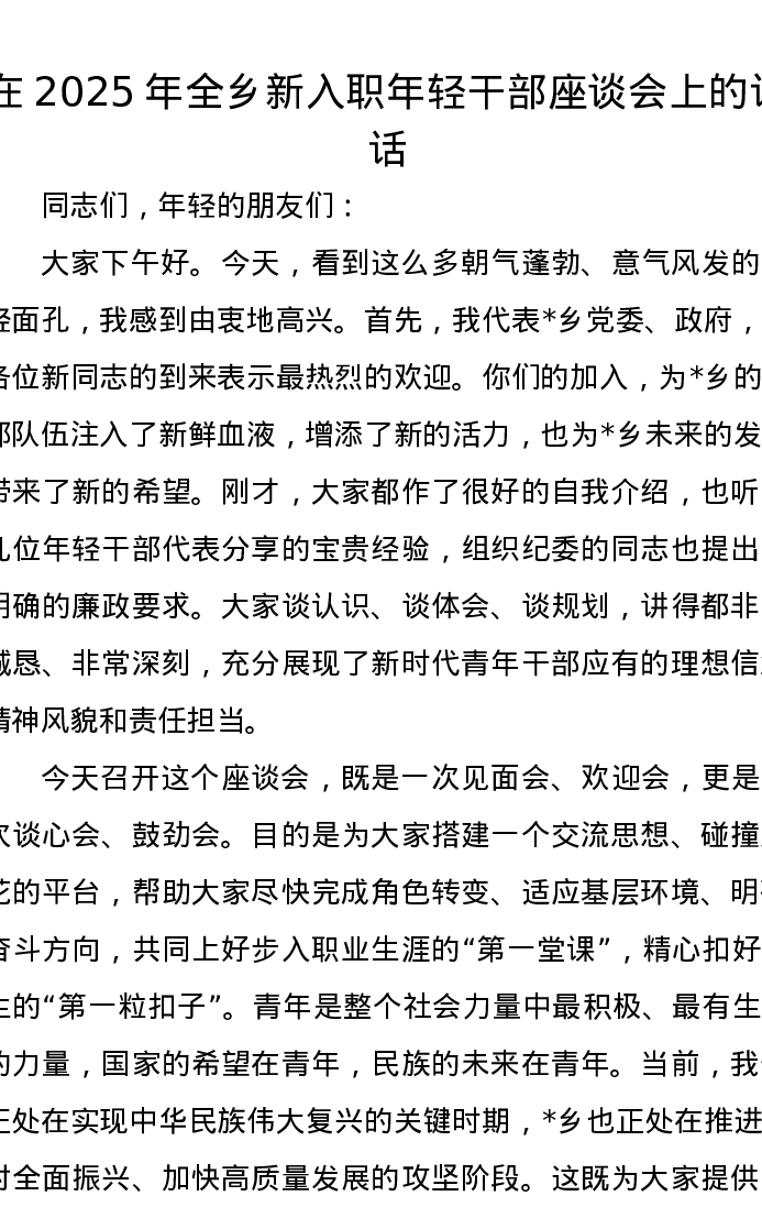 在2025年全乡新入职年轻干部座谈会上的讲话