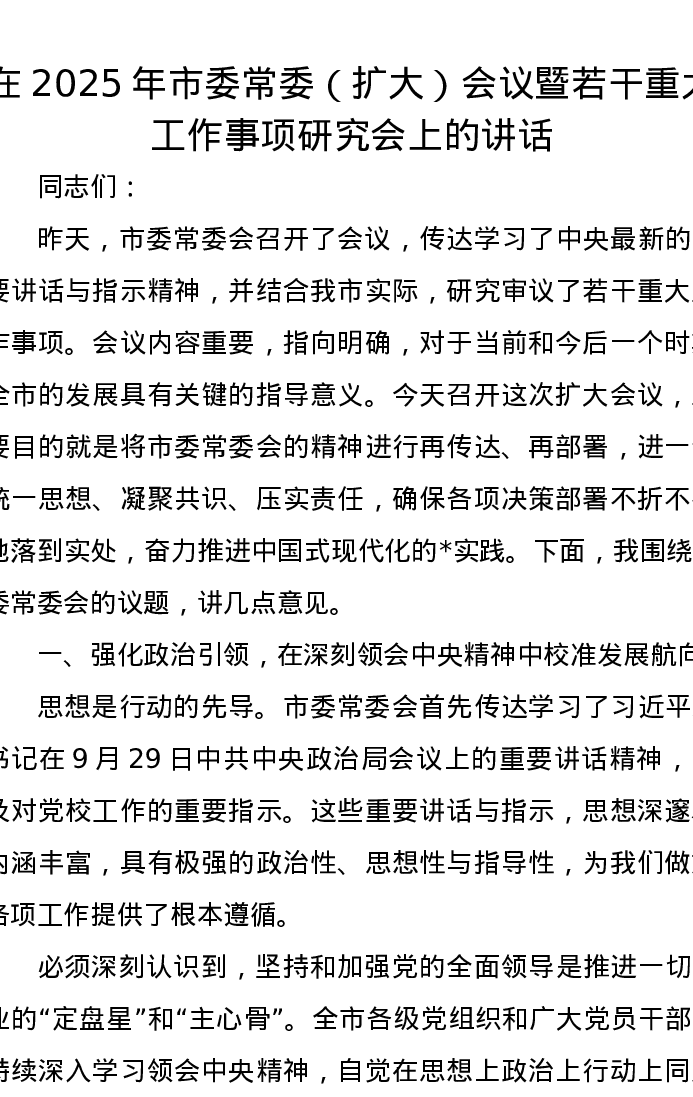 在2025年市委常委(扩大)会议暨若干重大工作事项研究会上的讲话