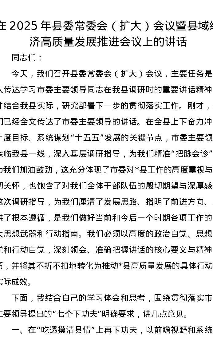 在2025年县委常委会(扩大)会议暨县域经济高质量发展推进会议上的讲话