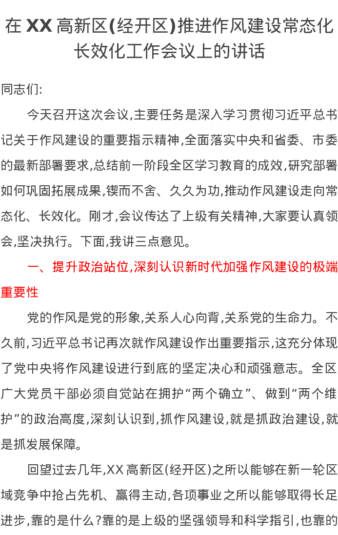 在XX高新区(经开区)推进作风建设常态化长效化工作会议上的讲话