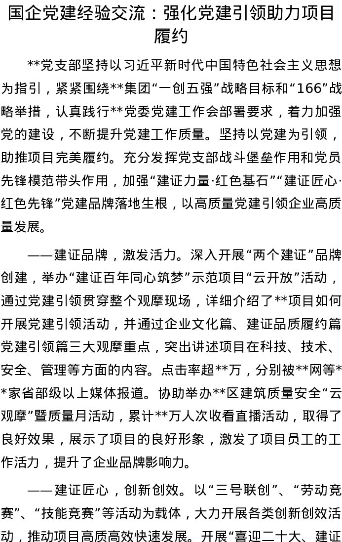 20220905国企党建经验交流:强化党建引领 助力项目履约