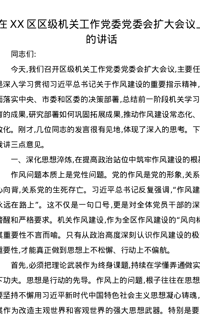 在XX区区级机关工作党委党委会扩大会议上的讲话