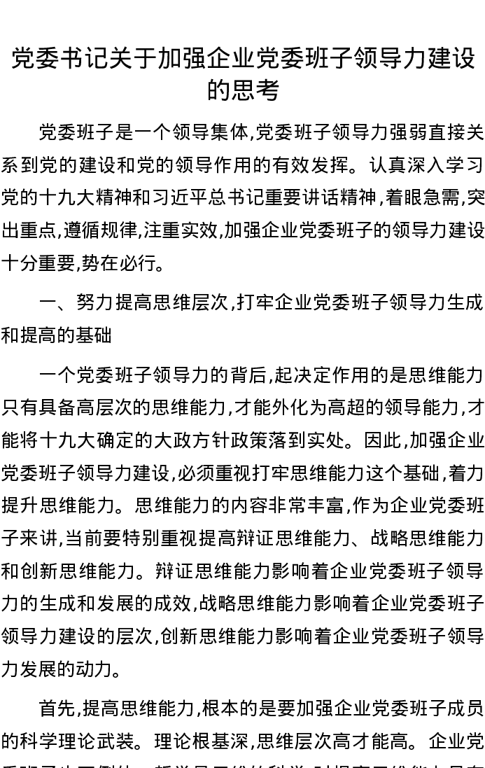 20220908党委书记关于加强企业党委班子领导力建设的思考