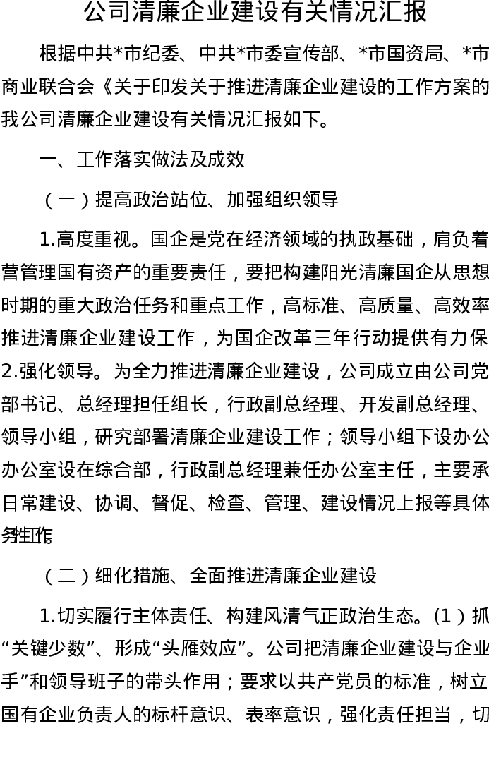 20220917公司清廉企业建设有关情况汇报