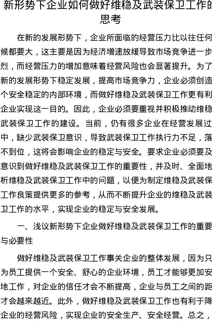20220917新形势下企业如何做好维稳及武装保卫工作的思考