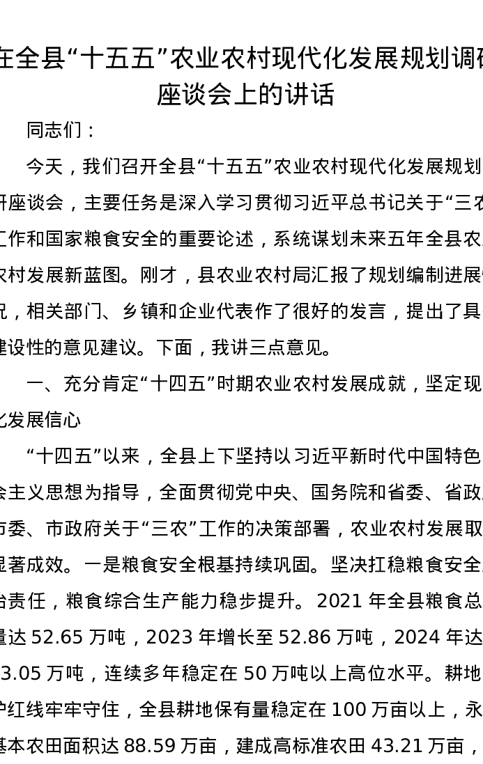 在全县“十五五”农业农村现代化发展规划调研座谈会上的讲话