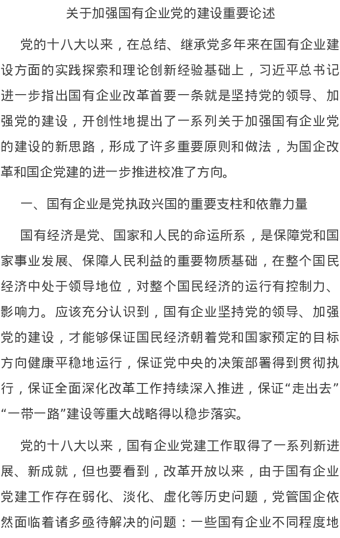 【党课讲稿】国企党建专题党课讲稿:关于加强国有企业党的建设重要论述