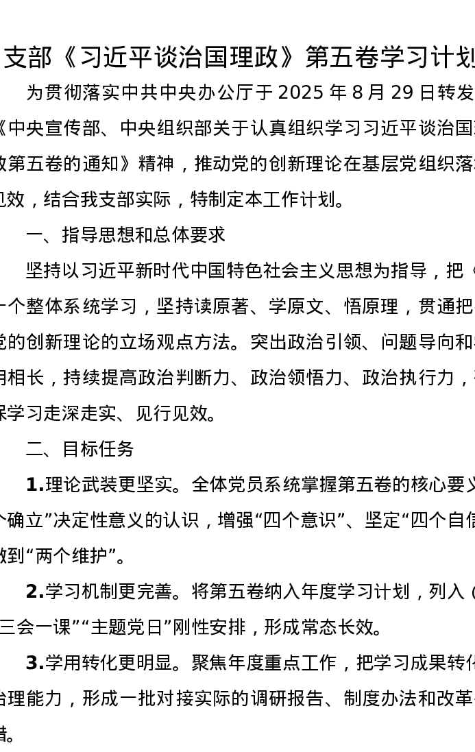 支部《习近平谈治国理政》第五卷学习计划(含计划表)
