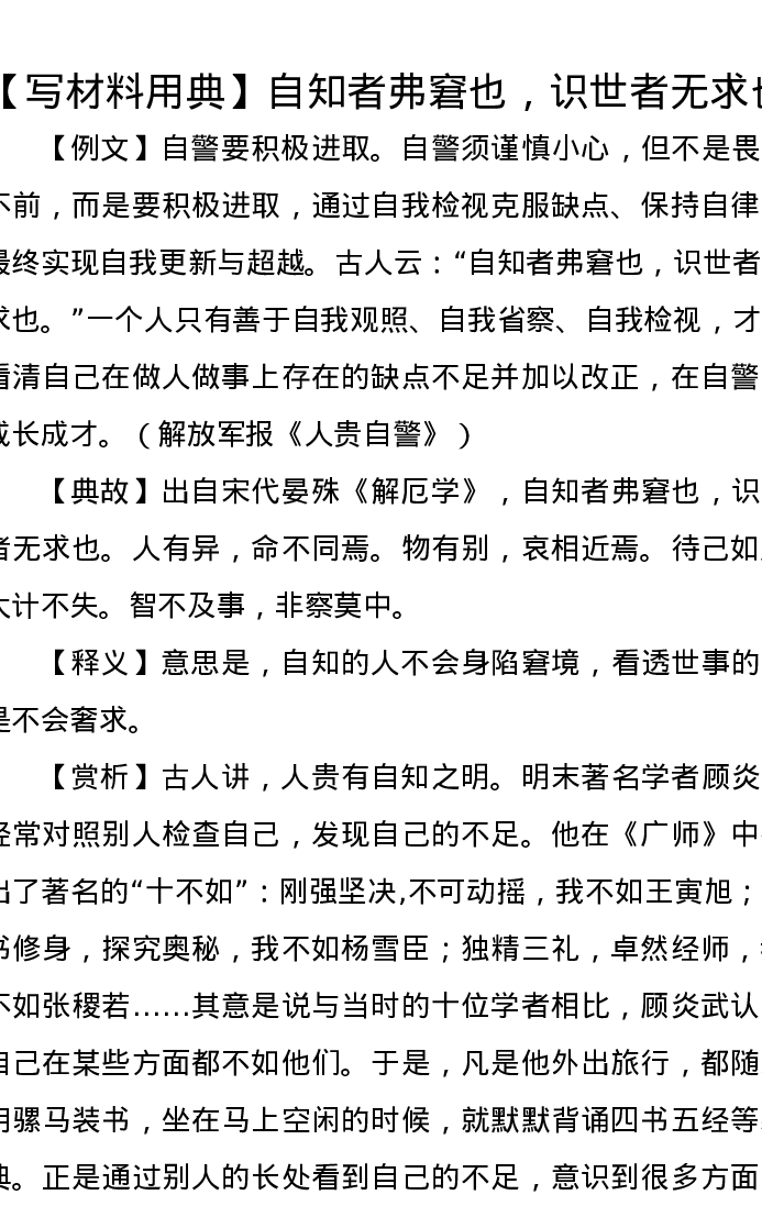 【写材料用典】自知者弗窘也,识世者无求也