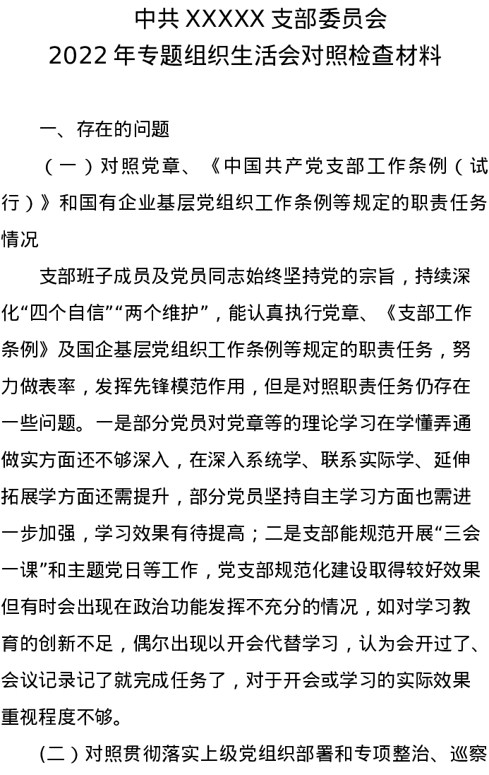 对照检查:2022组织生活会四个对照检查材料(国企支委会)3213字