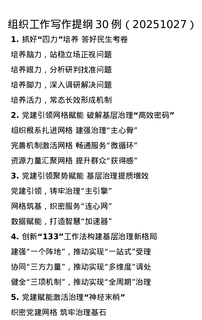 组织工作写作提纲30例(20251027)
