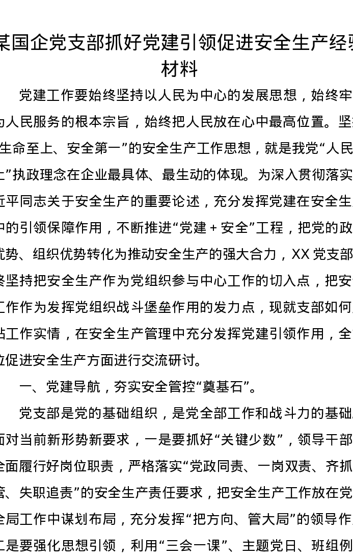 某国企党支部抓好党建引领促进安全生产经验材料